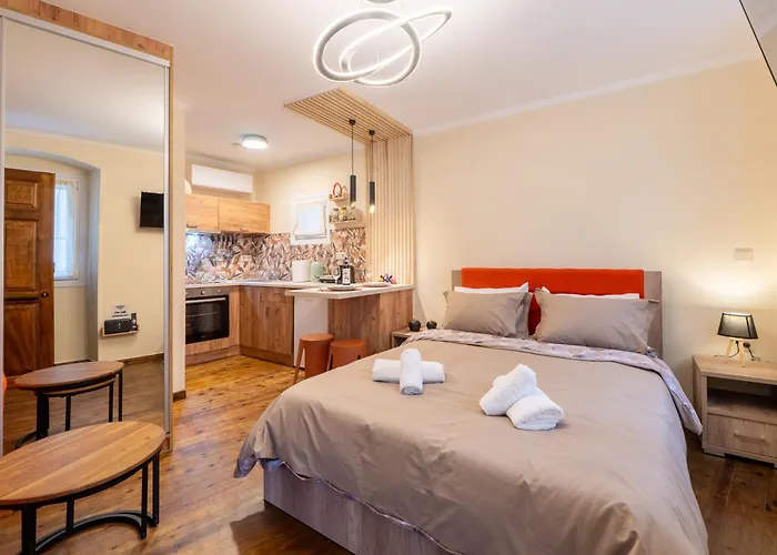 Daire Korfu şehrinin Corfu Old Town semtinde konumlanır. Yoğun bir günün ardından yemek pişirmek istemiyorsanız, daireye 200 metre uzaklıktaki Il Pirata restoranında Griekse mutfağı servis edilmektedir. Korfu Arkeoloji Müzesi'a sadece birkaç metre uzaklıktadır.